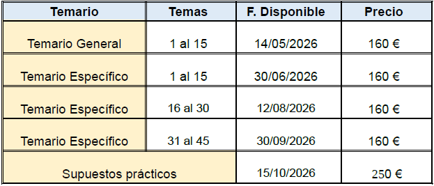 Todo el material se ofrece en formato descargable, permitiendo a las personas aspirantes organizar su estudio de manera flexible y adaptada a sus necesidades.